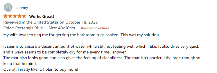 This footmat is designed to keep your floors safe, dry, and free from water stains or slips. It features quick-dry, super absorbent technology that rapidly soaks up water while the non-slip base ensures stability. Plus, it's easy to clean and long-lasting, making it the perfect addition to any home.